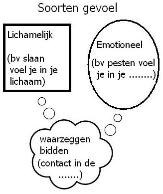 De mens heeft echter ook een niet-stoffelijke dimensie. Dat is te verduidelijken aan de hand van de verschillende soorten gevoel die een mens kan hebben. (Fig. 1)