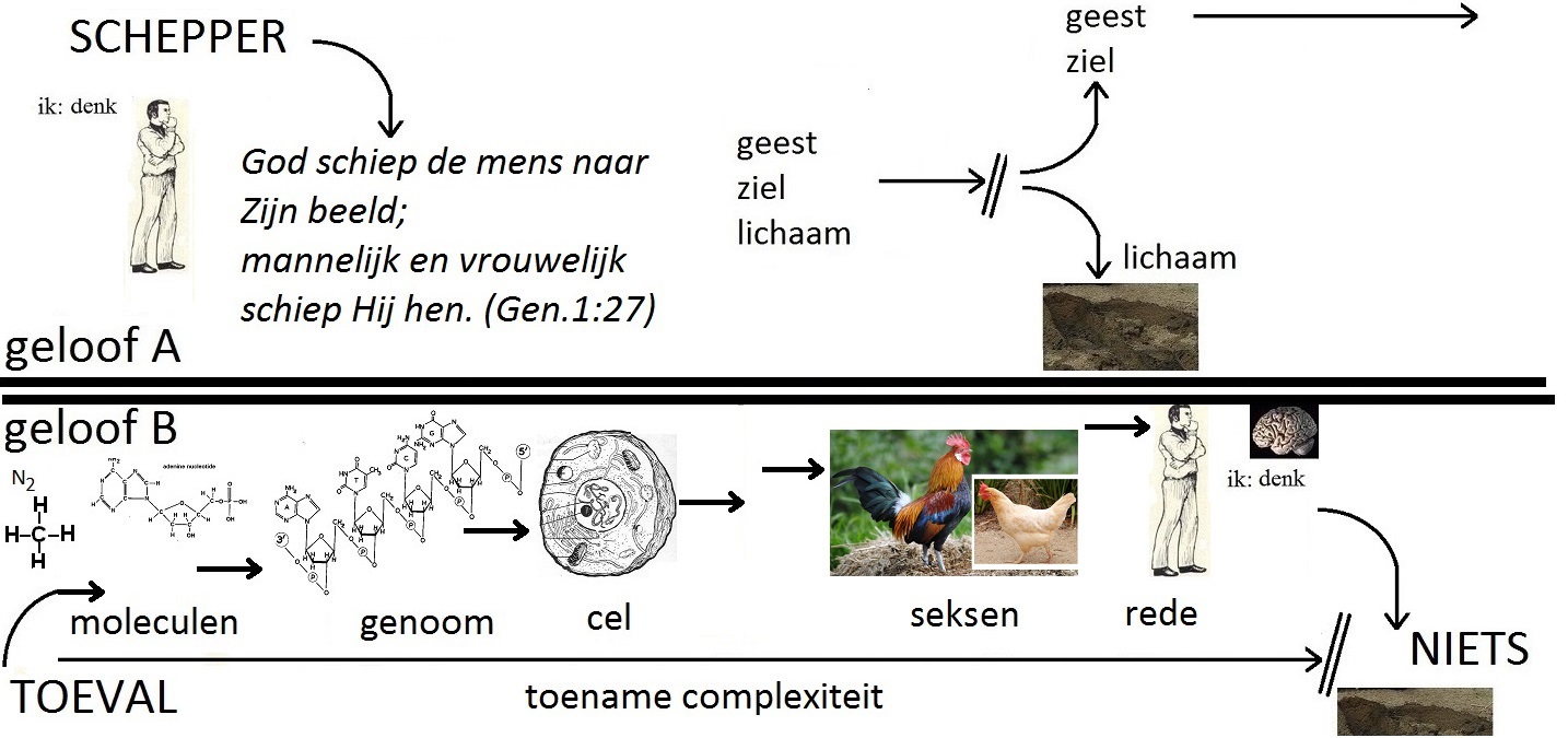 (voor verschil in bewijsvoering zie: <http://bijbelenonderwijs.nl/evolutie-nee/3023/> of <http://www.evolutie.biz/slimme%20vragen.html> )